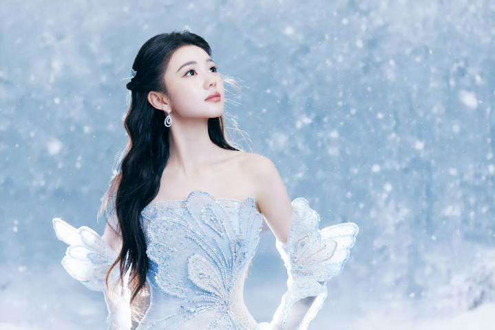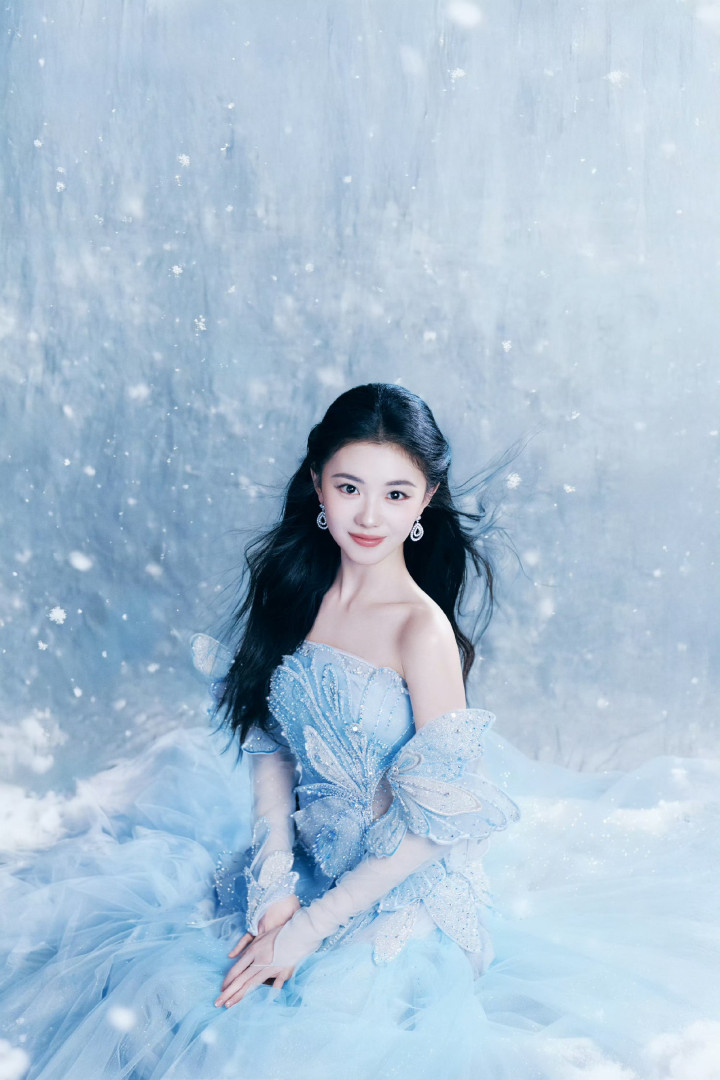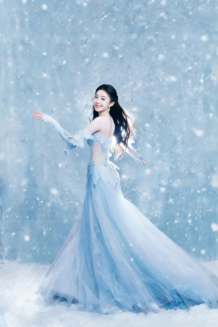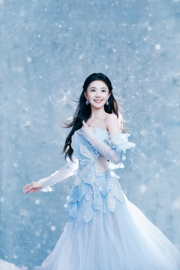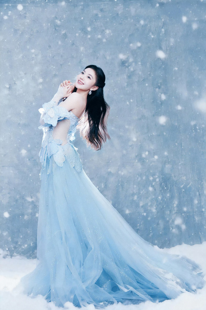 世界杯 刘浩然浅蓝抹胸礼裙, 冰雪公主驾临
