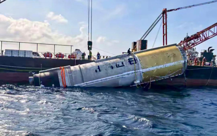 本年2月13日上昼,中国载东谈主航天工程办公室发布音问称我国海上搜索回收分队顺利完成长征十号输送火箭一级箭体的海上打捞回收任务。