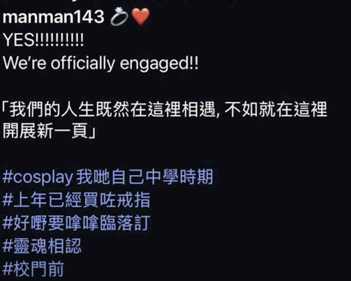 此外陈耀淙还高慢,求婚的处所是他与女友再会的处所,两东说念主的东说念主生既然在这里再会,不如就在这里张开新的一页,是以他采纳在与对方初结实的处所求婚。而这个初结实的处所,恰是两东说念主的中学校,也即是说女友是他的同学,两东说念主彰着交游很深远,有了很深厚的情谊基础才决定成婚。
