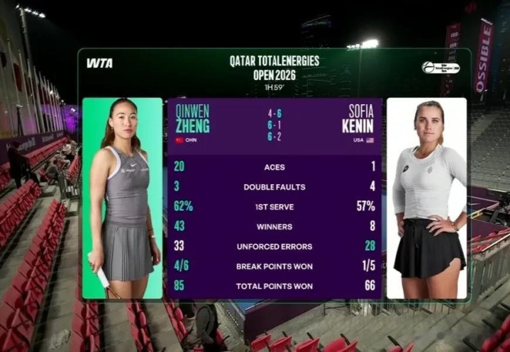 无论是“祈祷的力量”还是系统、严格的康复训练,郑钦文在对阵肯宁的比赛中展现出了极具说服力的身体状态——尤其是在发球端。