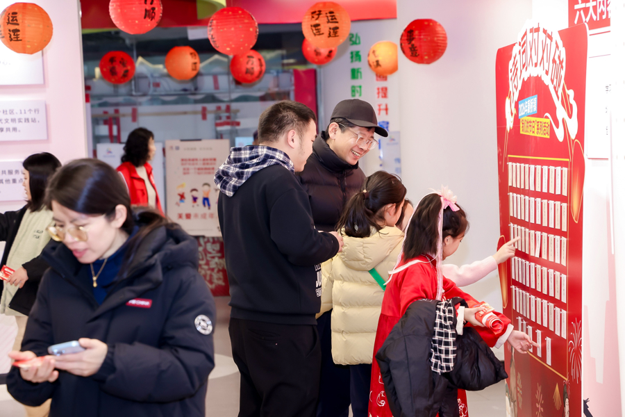 康桥镇新期间好意思丽膨大分中心广场上,康桥有喜“市”汇注东谈主气,成为一派欢畅的海洋。“康桥万家福”心愿墙前,住户们提防吊挂写满祝福的卡片,共同织就一幅柔和的社区祈愿图景。