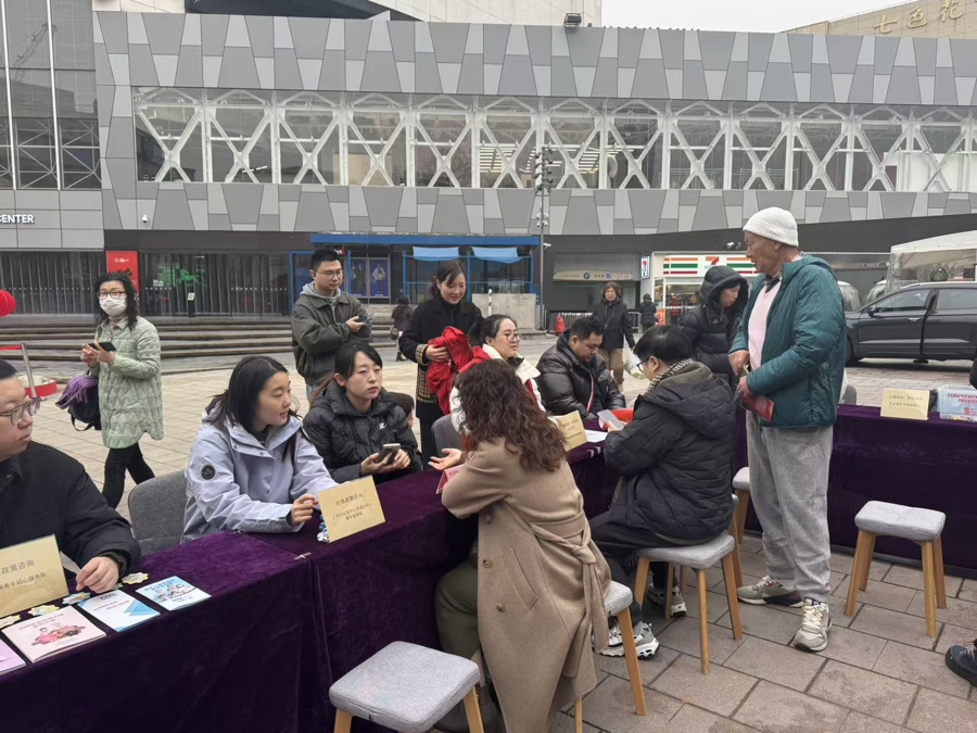 黎明的渔阳里广场,寒风微冷,但“学雷锋为民劳动作为”的摊位中却暖意融融。计谋研究、首饰清洗、健康测量、法律研究、废旧充电宝回收……志愿者们劳苦的身影为2026年的农历春节前奏增添了一抹亮色。