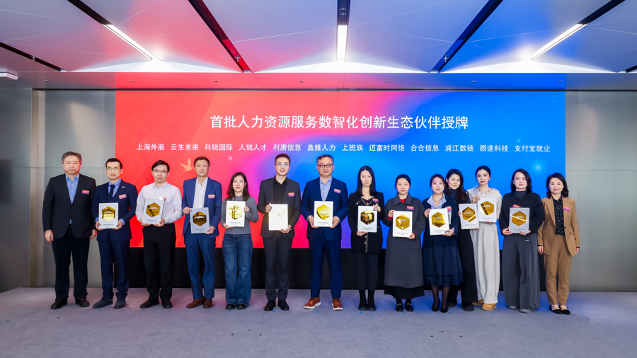 为进一步凝合转型协力,行为现场还举行了首批东谈主力资源服务数智化变嫌生态伙伴授牌典礼。珍岛信息、合合信息、浦江数链、颜途科技、支付宝服务等手艺限制代表,与上国际服、云生将来、科锐国际、东谈主瑞集团、利唐科技、上班族、盖雅东谈主力等头部东谈主力资源服务机构获授牌,矜重组建跨行业、跨限制的生态团员体。