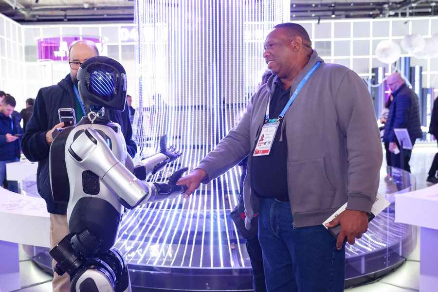 异邦嘉宾与AI机器东说念主办手