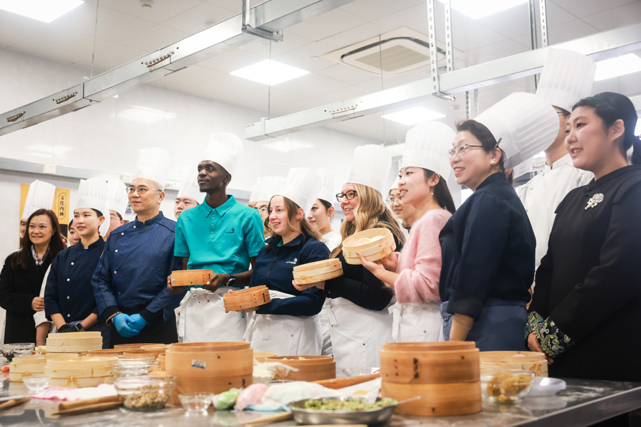 紧接着是蒸饺体验。亚伯拉罕生平第一次学包饺子,极端钟内便包出了“全场最好”。他举起饺子笑着说:“我以为我险些是一个中国东说念主了!”鲁静怡也奖饰他的时期。瑞秋则被饺子所承载的家庭蚁集寓意打动:“在中国文化里,饺子齐是和家东说念主沿路吃的,对吗?”