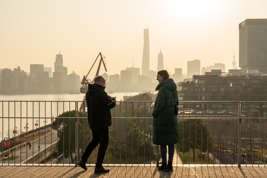 异邦嘉宾玩赏杨浦滨江孤高