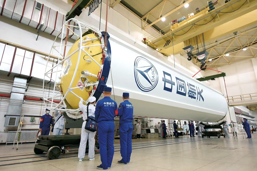 上海航天团队正在进行火箭辐照前的各项责任。 (费力相片)